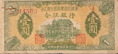 根據新四軍政治部命令:“成立華中銀行,并授權發行華中券,適應各地金融斗爭及經濟建設需要。”1945年8月,由1941-1945年先后設立的淮南銀行、淮北地方銀號、江淮銀行、鹽阜銀行、淮海銀行五個地區性銀行合并組成華中銀行??傂性O于江蘇淮陰。1947年華中銀行總行及部分分行隨新四軍主力北撤至山東后合并于北海銀行。1948年遷回蘇北敵后根據地,恢復各項業務。1949年5月改組為中國人民銀行華東區行。